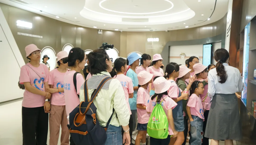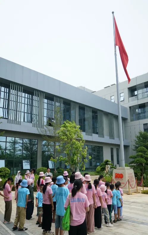 紧接着,孩子们来到了建党百年庆典红旗——070号红旗前。讲解员讲述了ag博天堂药业集团与庆典红旗的深厚渊源。孩子们听得津津有味,眼中闪烁着对党和国家的热爱与敬仰。